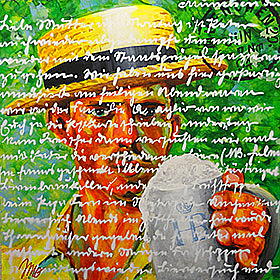 Wie sehr er von den zwischen 1897 bis zu seinem Tod 1914 im Zeitraffer erlebten Eindrücken geprägt wurde, zeigen u.a. die Veränderungen seiner Schrift. Das veranlasste mich auch bei meinen Gemälden zu dem ausgewogenen Wechselspiel von Bild und Schrift. Die Kombination seiner ortsbezogenen Selbstbildnisse und Grüße aus der Ferne erschien mir als ideales Mittel, den Menschen Albert Weisgerber und sein Leben authentisch und persönlich darzustellen. Wenn ich darüber hinaus der Bilderserie und Albert posthum noch meinen persönlichen Gruß hinzugefügt habe, geschah das aus Anerkennung vor einem großen Künstler.