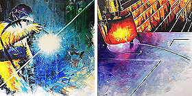 Meine Interpretationen vom Formen von Stahl und Blech, vom Schneidbrennen, MIG-, MAG- und WIG-Schweißen begrüßen und begleiten die Kunden, Partner und Mitarbeiter in und durch die Flure und Räume des Unternehmens. Wer sich die Gemälde mal ansehen möchte, meldet sich am besten bei mir telefonisch: 01715782272 oder per E-Mail: Jutta.Mohr@JumoArt.de